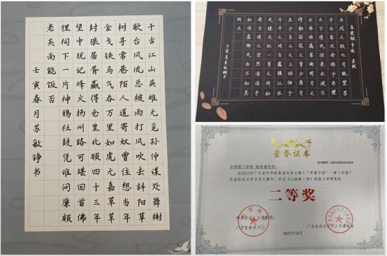 雅言传承文明,经典浸润人生。为提高莞工学子语言文字应用能力和语言文化素养,激发对中华经典的热爱,营造爱读书、读好书、善读书的浓厚氛围,根据广东省教育厅文件要求,学校每年举行中华经典诵写讲东莞理工学院校级比赛。2022年莞工学子书法作品《沁园春·雪》斩获省级硬笔书法大学生组二等奖。今年中华经典诵写讲东莞理工学院校级比赛还在火热进行中。