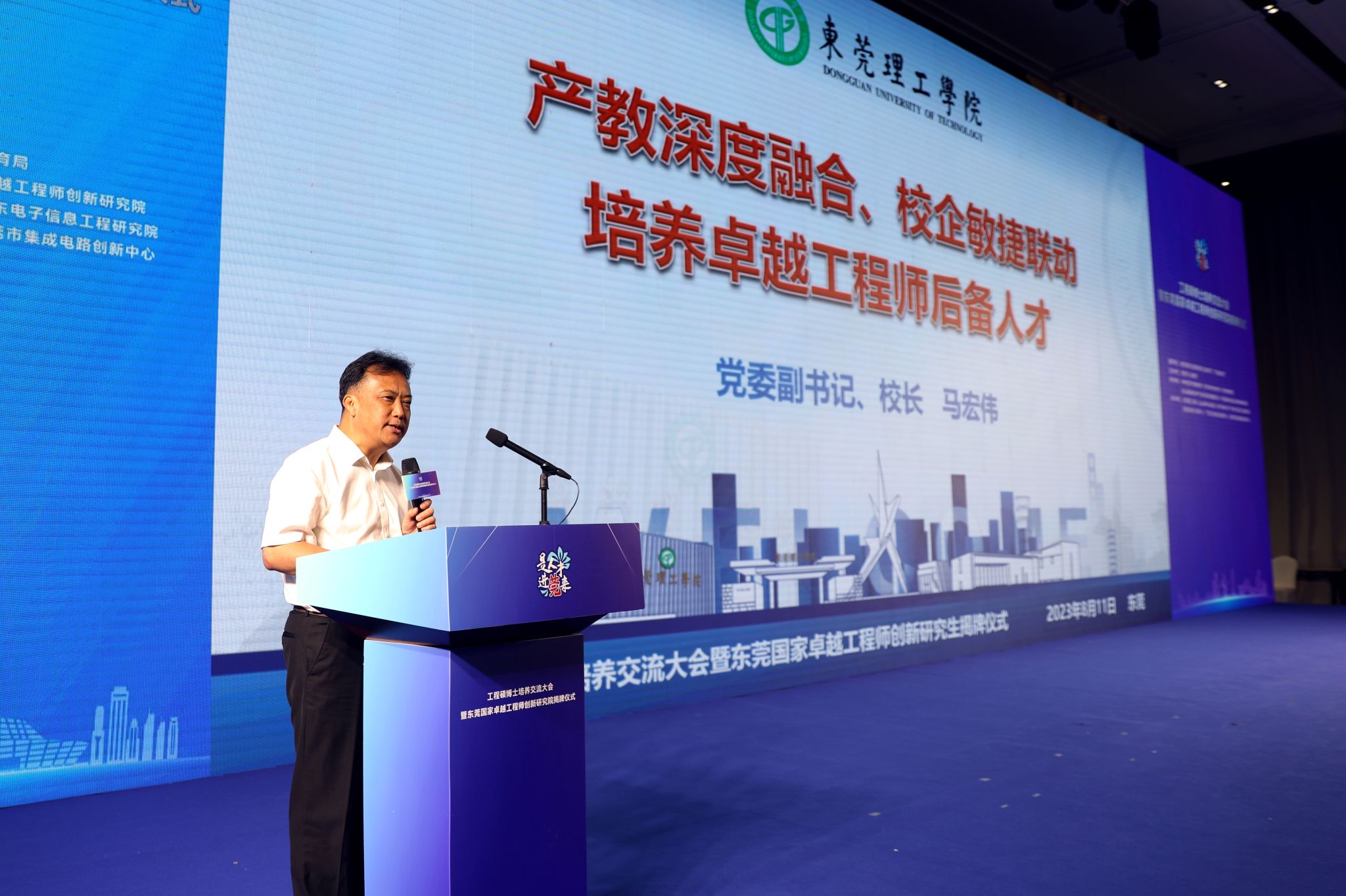 8月11日,工程硕博士培养交流大会暨东莞国家卓越工程师创新研究院揭牌仪式在松山湖举行。国内19所重点合作高校代表,华为、立讯技术等32家卓越工程师联培重点企业代表等共300余人参加了本次活动。学校校长马宏伟为东莞国家卓越工程师创新研究院揭牌,获颁研究院战略咨询委员会聘书,并作主题报告。