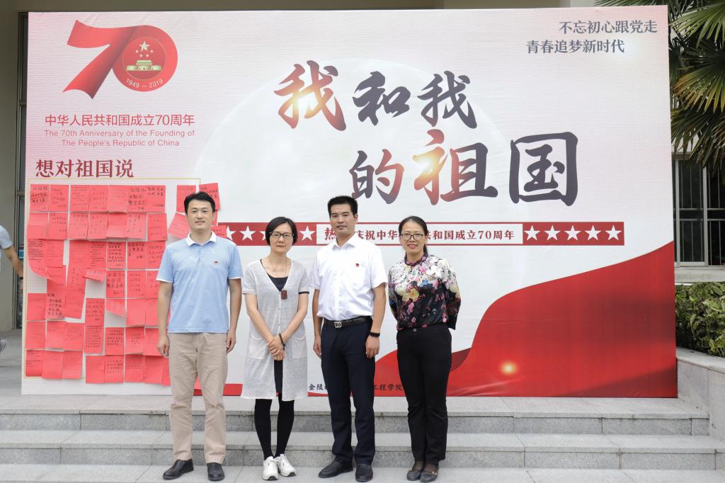 本次活动依托学院“不忘初心跟党走,青春追梦新时代”主题党日活动,充分发挥学生党员的骨干带头作用,征集了广大学生对祖国70周年华诞的寄语。同时,学院全体教职工也积极参与了本次活动,真诚地表达了对祖国的祝福。70年是辉煌的70年,同时也是奋斗的70年,在场教职工表示要铭记立德树人的根本任务,与祖国同呼吸、共命运。学生党员也纷纷表态,爱国应从现在做起,从点滴做起,勤奋学习,苦练本领,用自己的实际行动为祖国母亲增光。最后,全体师生在院党委副书记喻强带领下齐声喊出了对祖国的祝福:“祝祖国繁荣昌盛”。