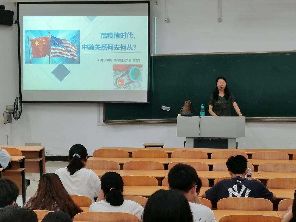 材料工程学院于6月9日下午3:30在3107承办了题为“后疫情时代,中美关系该何去何从?”的主题讲座。本次讲座由马克思主义学院陶爱萍老师担任主讲,院学生代表参加。