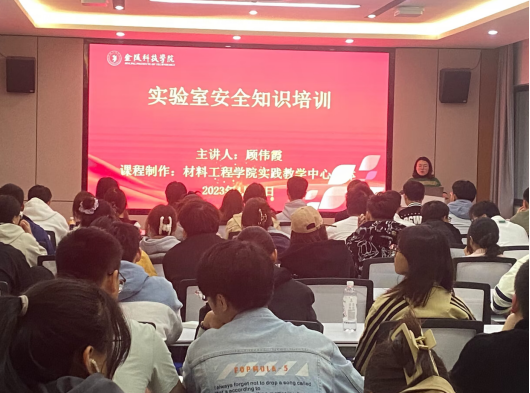 材料工程学院高度重视实验室安全管理工作,为丰富和完善材料工程学院实验室安全教育培训体系,保障实验室安全稳定运行,于2023年4月26日,材料工程学院实践教学中心与学生工作办公室联合组织实验室安全知识培训,培训对象为学院涉危化品实验室课题组学生以及19级、20级、21级部分班委,共计123人。