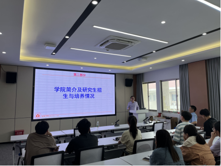 会上,胡坤宏对能源材料与化工学院的创建、硕士研究生招生简章、材料科学与工程一级学科硕士点、材料与化工专业硕士点、学院师资情况(教授18人、副教授20人,其中具有博士学位的专任教师47人)、硕士就业等多个方面进行了详细的介绍。随后邓崇海对学校地址、校园环境、学业奖学金等方面也做了相应的介绍。最后,两位教授预祝同学们都能考上心仪的学校,同时也非常欢迎学生报考合肥学院能源材料与化工学院,期待加入他们的大家庭。