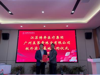 随后,双方举行了实习基地签约仪式,广州美第奇珠宝有限公司将成为材料工程学院的校外实习基地,为学院的学生提供实习和就业机会。