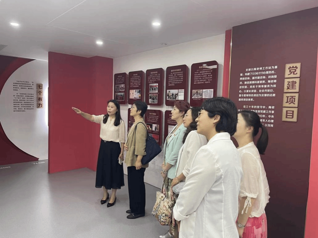 陶老师工作站负责人及团队核心成员热情接待了陈健书记一行。陶老师工作站负责人首先带领大家参观了工作站的咨询室、团体辅导空间及心理健康教育展示区,详细介绍了工作站的发展历程、组织架构与服务模式。陈健书记介绍了学院视光专业建设过程中开展志愿服务的情况,视光工程系教师党支部书记李新华介绍了视光工程专业建设的相关情况。