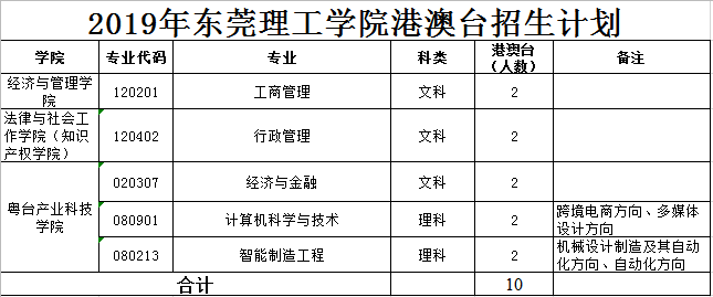 2019年东莞理工学院港澳台招生计划