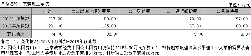 【预算公开】2016年东莞理工学院“三公”经费预算