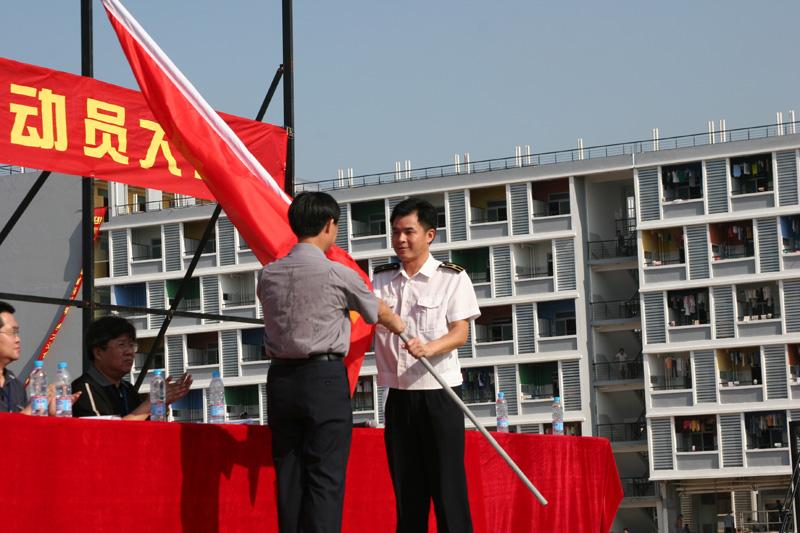 学院临时党委副书记王江水等军训团成员出席了昨天的军训动员大会。王江水副书记作了动员报告,他要求2005级新生发扬艰苦奋斗的精神,不怕苦、不怕累,保质保量完成军训各项任务。军训团团长陈振华在动员大会也作了发言。