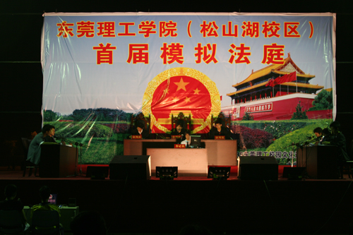 为了提高学生的法律意识、加强学生法律观念,由院校园文化巡礼筹备委员会主办、政法系承办的东莞理工学院(松山湖校区)首届“模拟法庭”于10月13日晚在篮球场上准时“开庭”。院学生处副处长邢大立副教授、政法系主任李洪君教授、广东医学院以及我院的部分师生参加了这次活动。