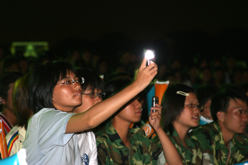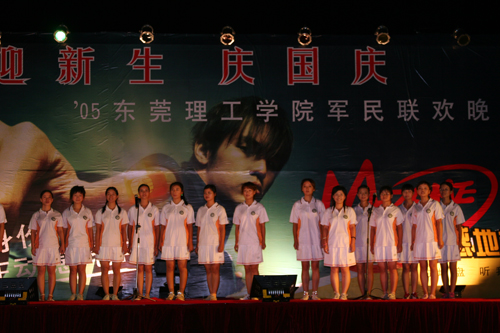 “迎新生 庆国庆”2005东莞理工学院军民联欢晚会昨晚举行,院长杨晓西、临时党委副书记王江水等学院领导和数千观众观看了晚会。