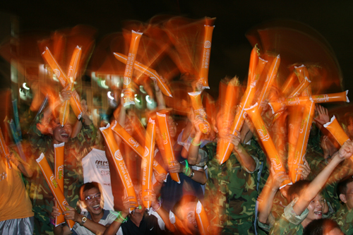 昨晚上的运动场成了一个欢乐的海洋,时长1个半小时的晚会,15个节目次第登场,各样式的文艺节目粉墨登场,高潮一浪接一浪。广东医学院、亚视演艺学院、南博职业技术学院等兄弟院校亦来献艺,共襄盛举。