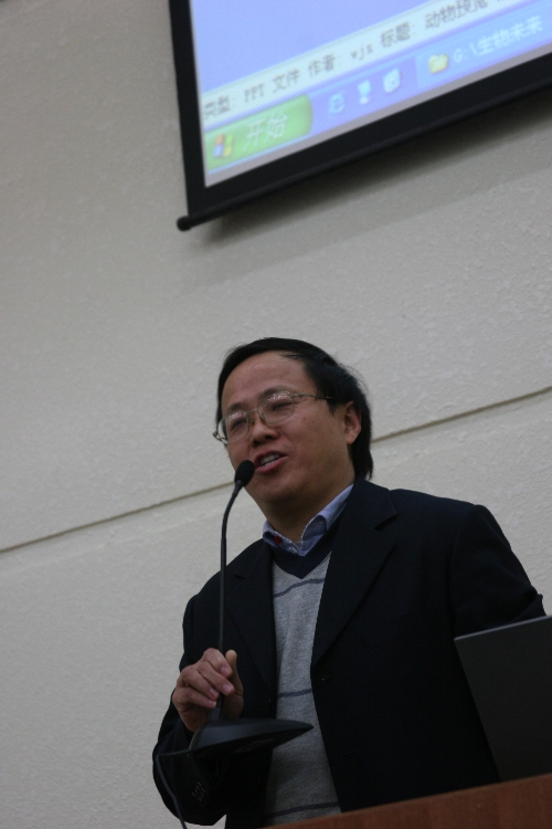 王江水的讲座以未来生命的形态为切入,结合现有的科学界的科研成果,从天文学、气象学、人类学、生命科学等诸多学科的视角,畅想生命的未来的发展方向,向同学们生动展示了未来生命的可能形态。讲座的内容丰富,资料翔实,生动的讲解,配以精彩的图片,为同学们打开思考生命演化之窗口,博得了同学们啧啧称赞。