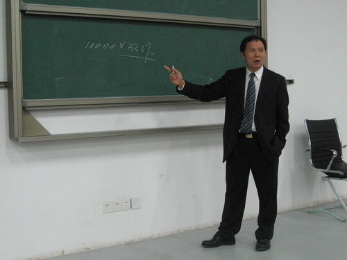教务处处长阮湘元教授、副处长刘健,工商管理系主任曹时礼教授和部分教师、工商管理系、电子系学生到场聆听了报告会。