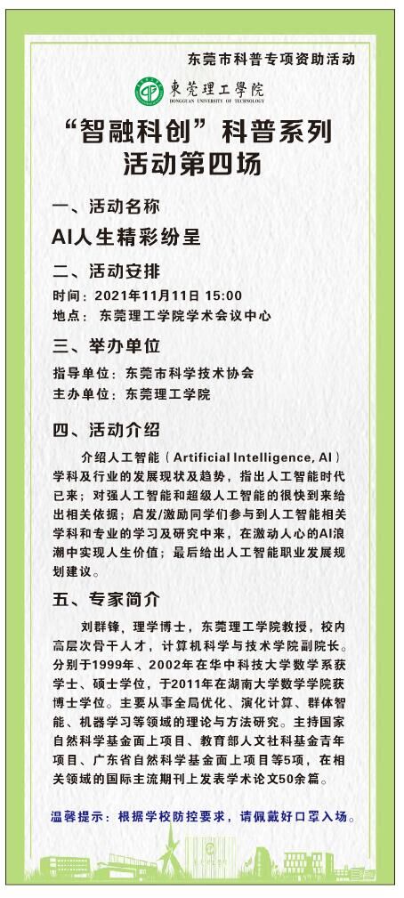 莞工科普系列活动|2021年第4场:AI人生精彩纷呈