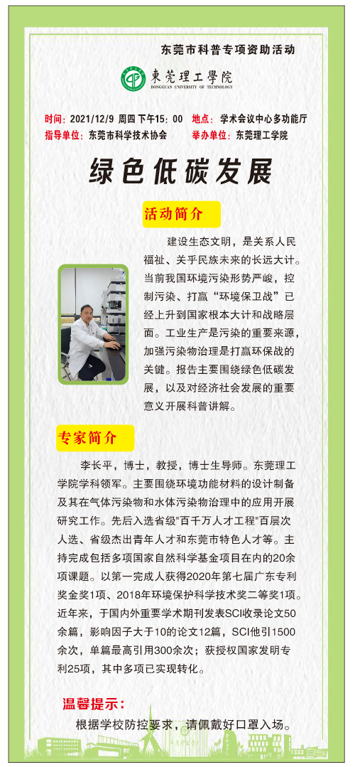 莞工科普系列活动|2021年第9场:绿色低碳发展