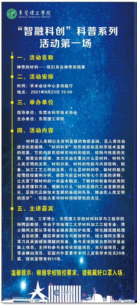 莞工科普系列活动|2021年第1场:神奇的材料——我们身边神奇的现象