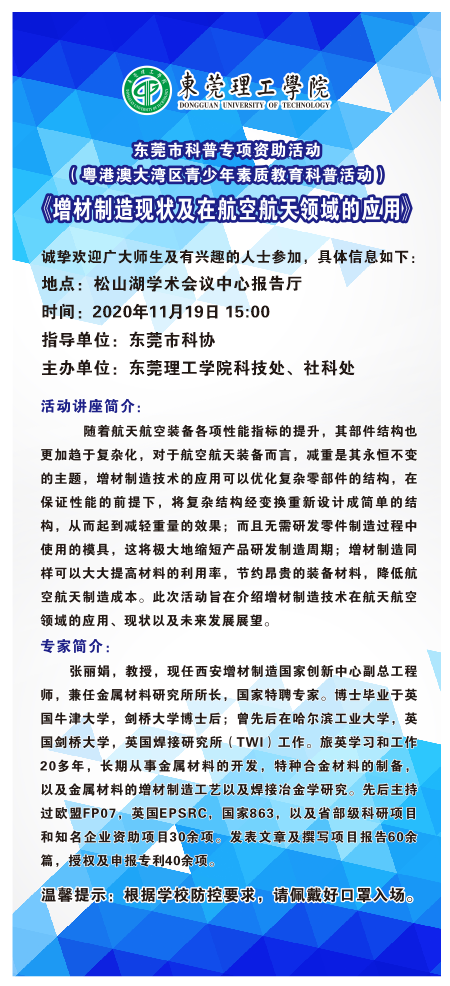 科普讲座:《增材制造现状及在航空航天领域的应用》