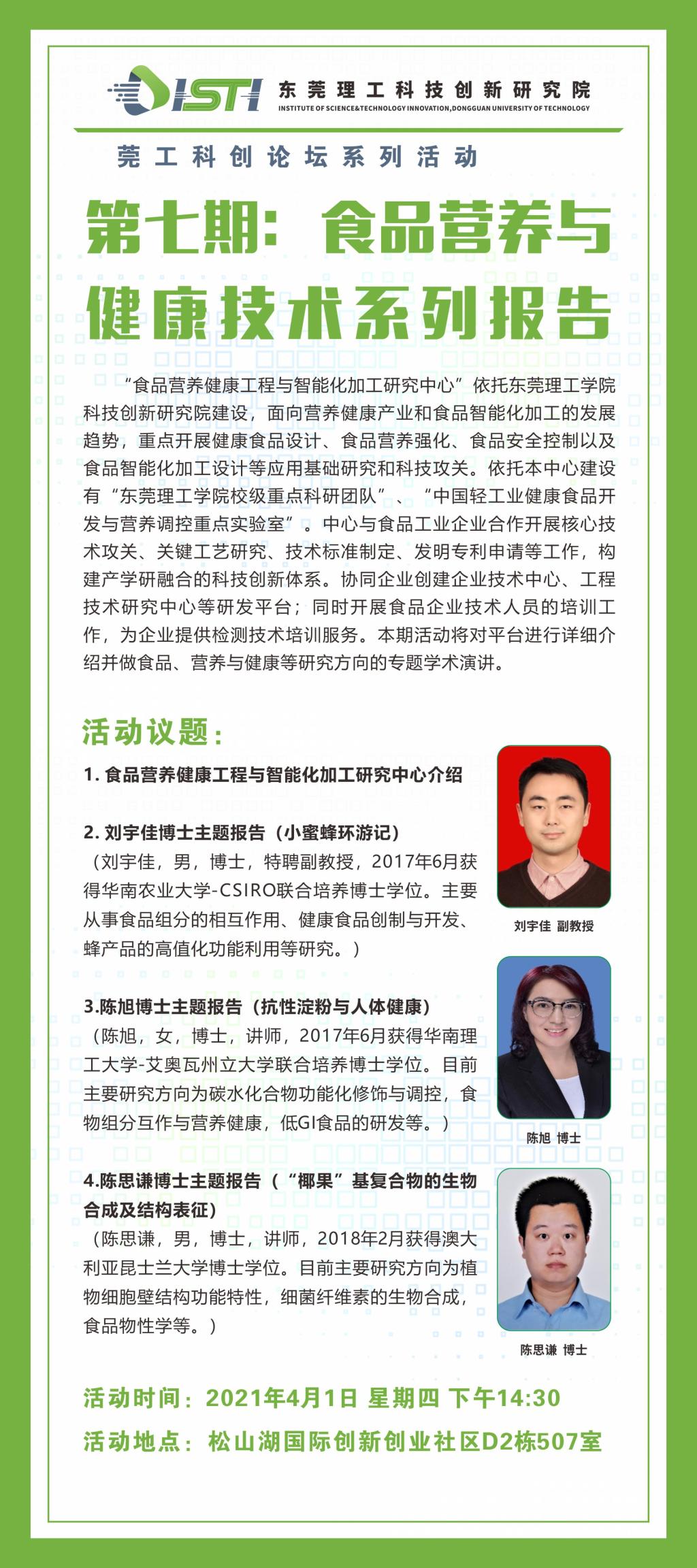 莞工科创论坛|第七期:食品营养与健康技术系列报告