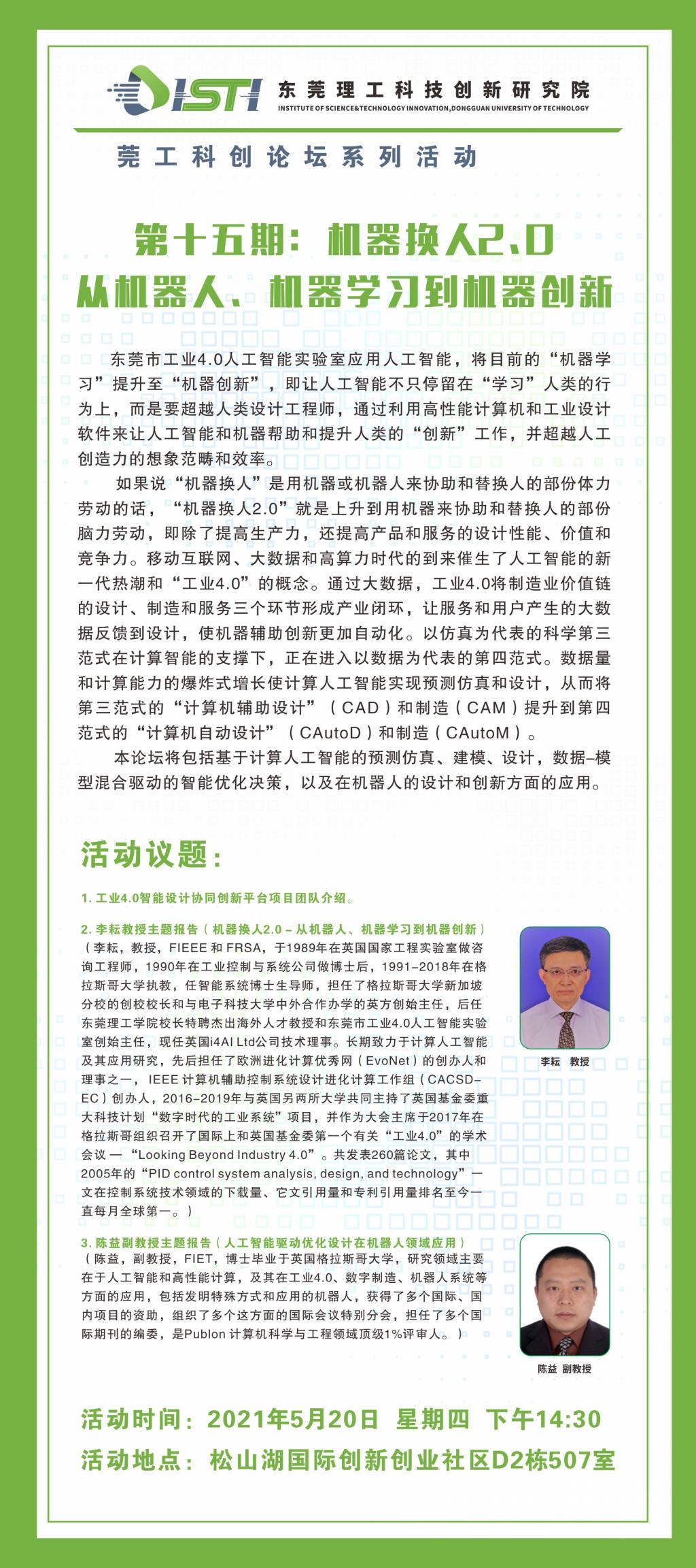 莞工科创论坛|第十五期:机器换人2.0 从机器人、机器学习到机器创新