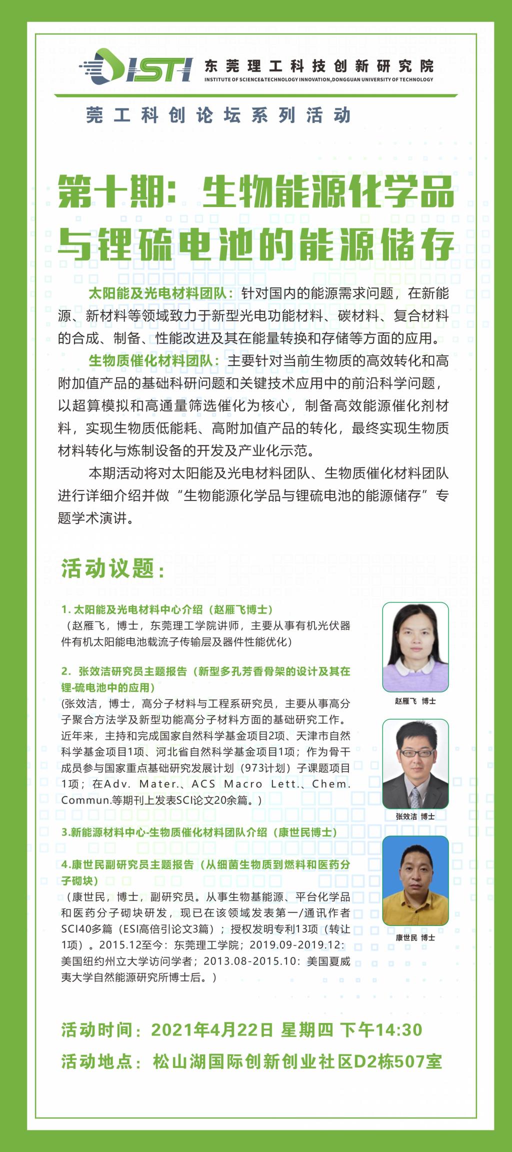 莞工科创论坛|第十期:生物能源化学品与锂硫电池的能源储存