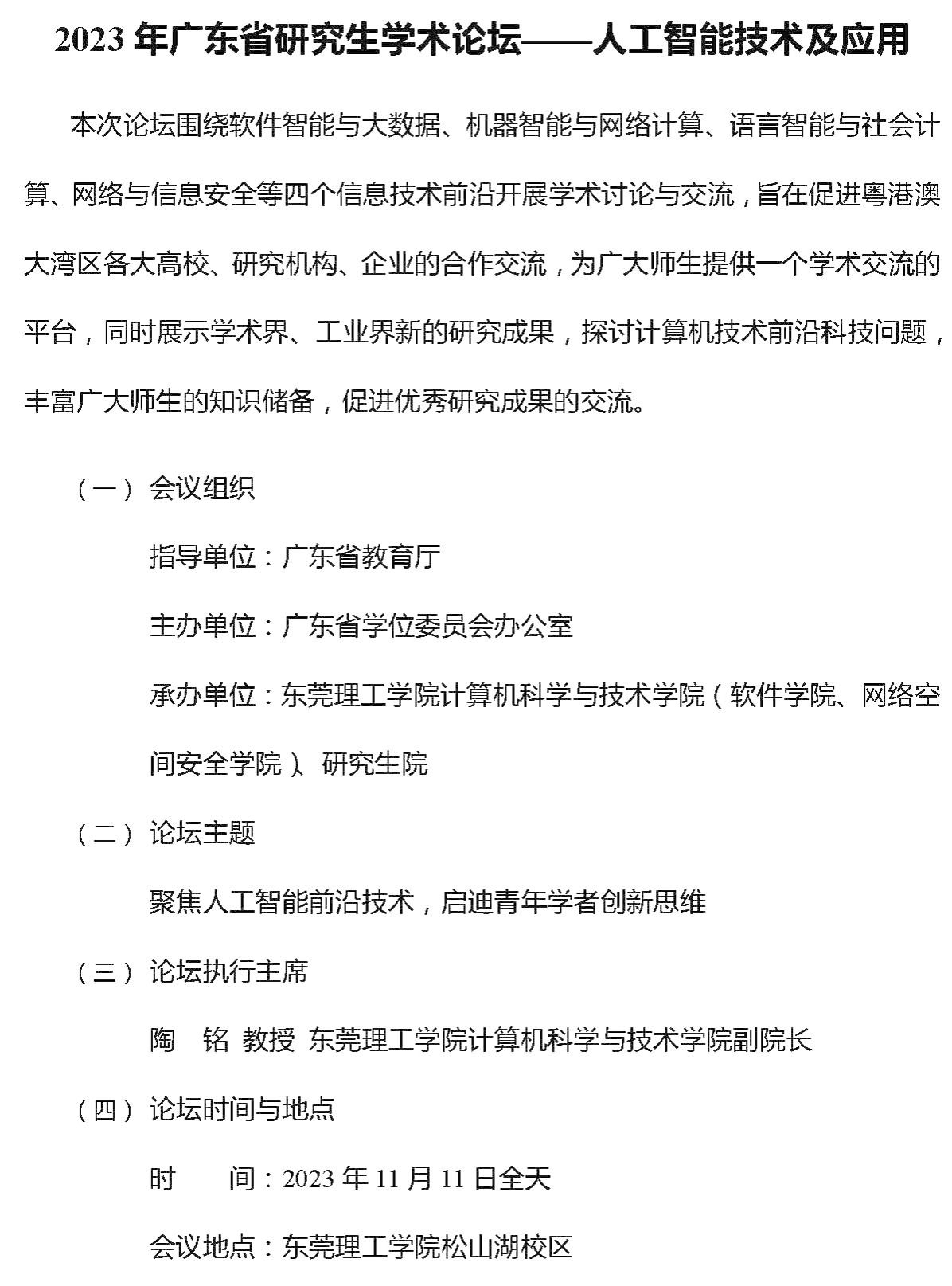 2023年广东省研究生学术论坛(人工智能技术及应用)