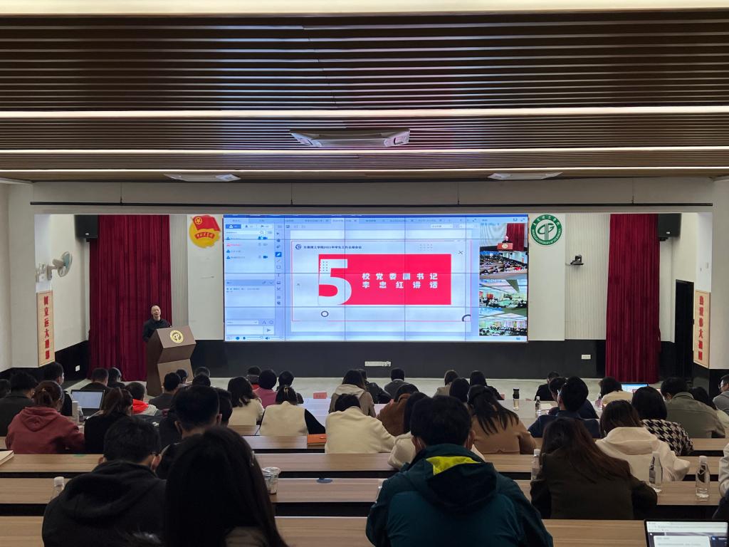 1月12日,东莞理工学院2021年度学生工作总结会议在松山湖校区学生中心举行。校党委副书记李忠红,党委学研工部、学生处、团委、就业中心、各二级学院学生工作负责人以及学工队伍全体人员出席会议。会议由团委书记、党委学研工部副部长劳丹主持,“觉新育人奖”奖教金设立者江浩然校友参加会议并颁奖。