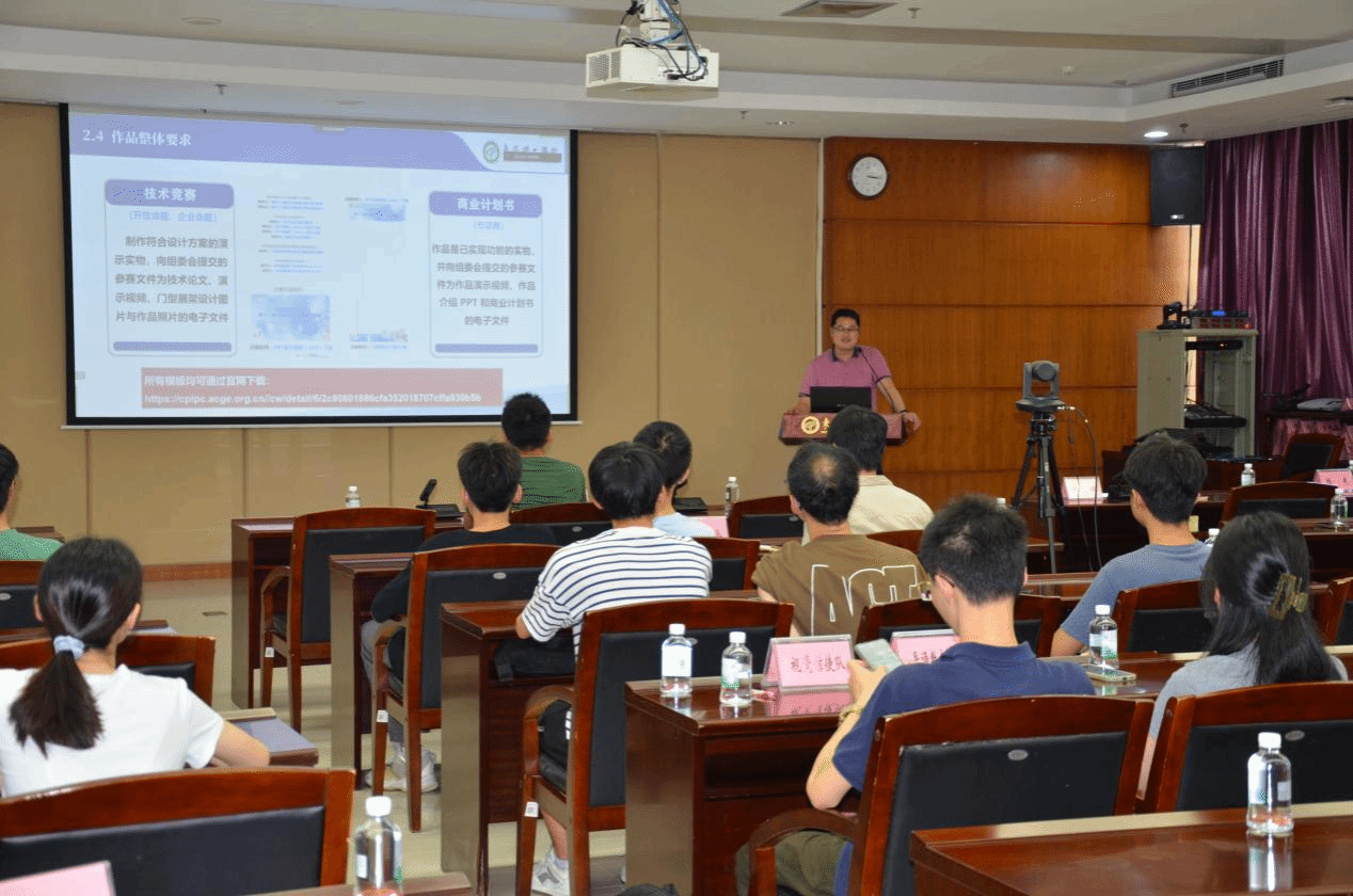 廖文波从研电赛简介及上一届风采回顾、第十八届研电赛参赛说明与激励措施及校赛安排说明三个方面进行了详细讲解,并就研究生与指导老师提出的参赛及校赛等细节问题进行了解答。