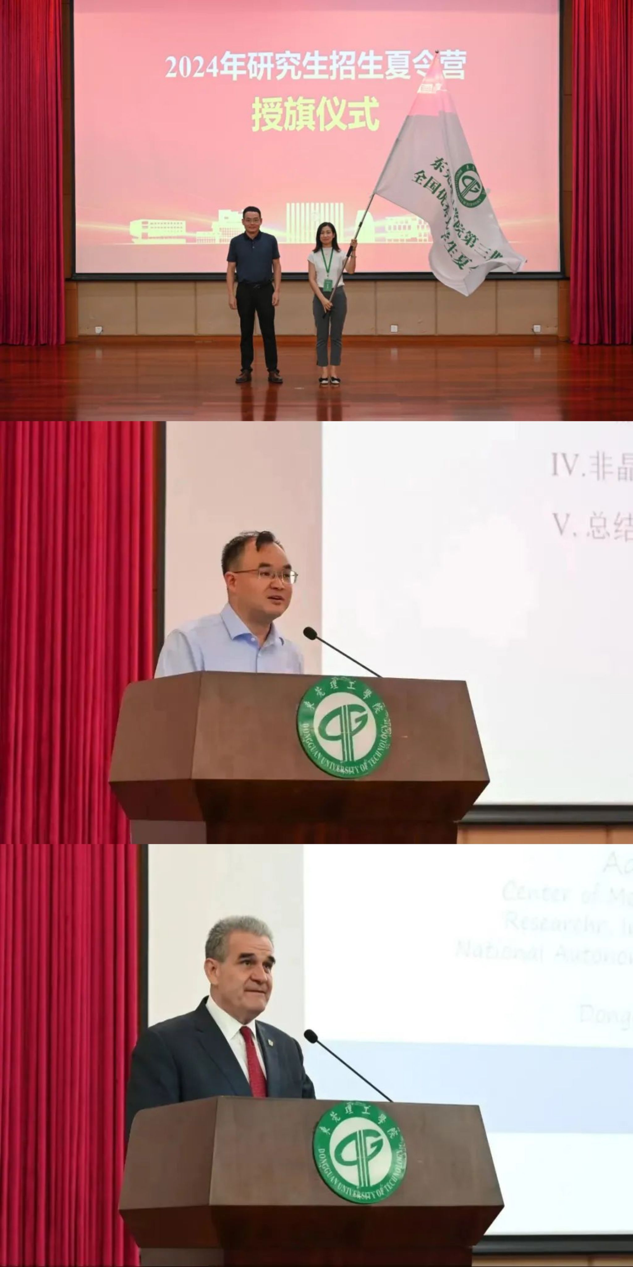 夏令营在学校副校长徐勇军的授旗中拉开序幕。大咖的学术讲座将夏令营活动引向高潮,广东省松山湖材料实验室科研团队负责人张博研究员和墨西哥国立自治大学Abalterbo Noyola高级研究员,先后作了非晶合金领域的专题学术报告以及科研学术经历分享报告,向在场师生介绍国际学术前沿最新动态,拓宽了同学们的学术研究视野。