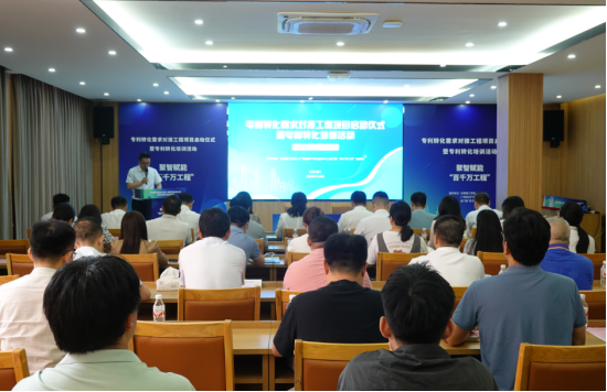 7月4日,由东莞理工学院、广州知识产权交易中心(以下简称“广知中心”)、虎门镇“百千万工程”指挥办联合举办的专利转化需求对接工程项目启动仪式暨专利转化培训活动在东莞市虎门镇举办。广东省市场监督管理局(知识产权局)一级巡视员谢红、东莞市市场监督管理局(知识产权局)副局长杜江,东莞市“百千万工程”指挥办、虎门镇政府、虎门镇“百千万工程”指挥办、东莞理工学院、广州知识产权交易中心相关领导参加。东莞市30余家科技企业参与活动。