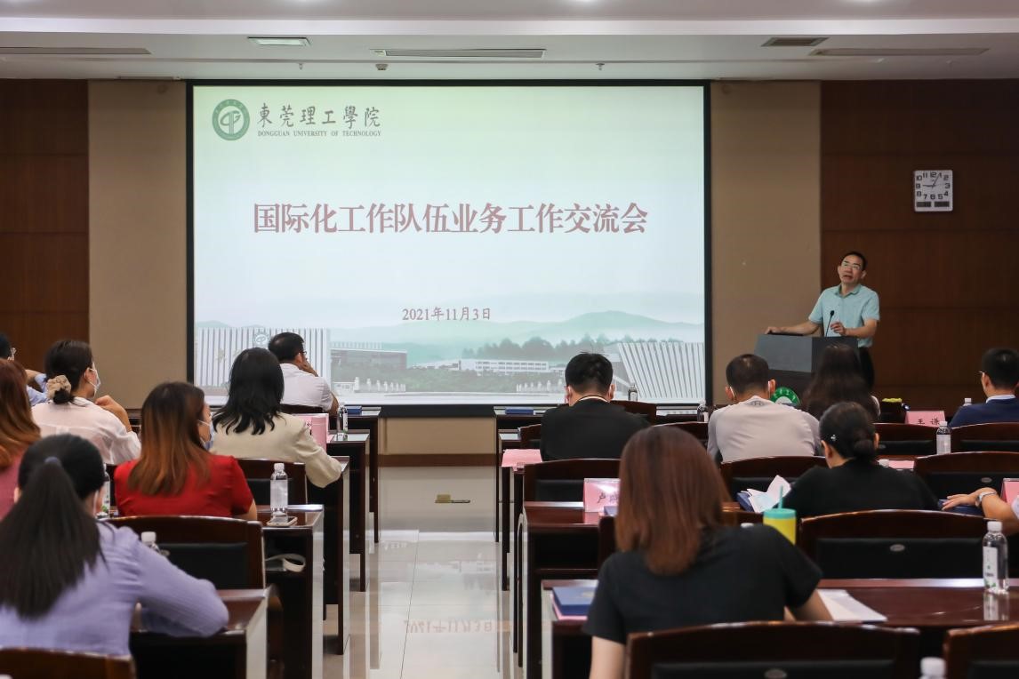 11月3日,为全面提升学校国际化工作队伍业务工作能力,国际合作与交流处(港澳台事务办公室)联合教师工作部举办国际化工作队伍业务工作交流会。学校党委委员、副校长杨敏林,东莞市委外办出国管理科、东莞市科技人才服务中心、松山湖产业发展局等部门相关负责人,我校国际合作与交流处(港澳台事务办公室)负责人、各二级教学机构国际化工作联络员参加会议。