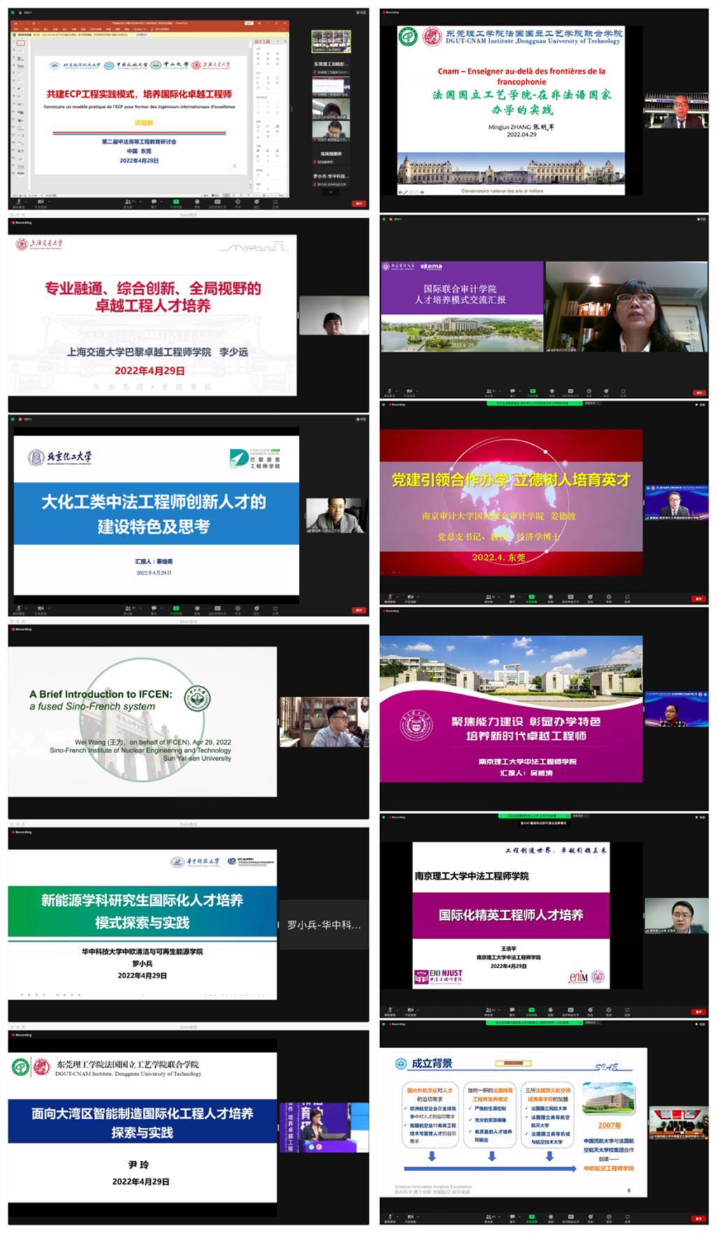 参会专家与学者站在中外合作办学实践的高度,着眼工程师人才培养全过程,深入围绕创业教育实践、专业融合创新、培养体系创新、实践模式创新、办学特色凝练等议题,进行了富有价值的研讨,提出了鲜明独到的见解。其中,北京航空航天大学中法工程师学院院长洪冠新分享了共建ECP工程实践模式的主要举措,华中科技大学中欧清洁与可再生能源学院院长罗小兵分享了新能源学科研究生国际化人才培养模式探索与实践,上海交通大学巴黎卓越工程师学院法方院长Frederic Toumazet分享了办学十年中不断革新的主要做法,中山大学中法核工程与技术学院院长王为分享了他们的人才培养体系,东莞理工学院法国国立工艺学院联合学院执行院长尹玲分享了面向大湾区智能制造国际化工程人才培养探索与实践等等。这些实践经验的分享,对推动和完善中外合作办学的发展有着非常积极的启发作用。