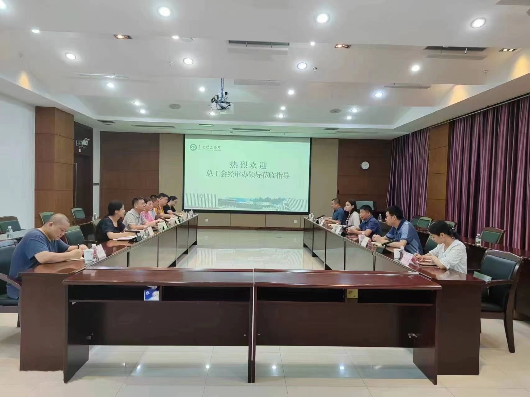 近日,东莞市总工会经费审查委员会办公室一行5人来校,审计校工会委员会经费使用情况。校工会主要负责人向审计组汇报了相关工作情况。