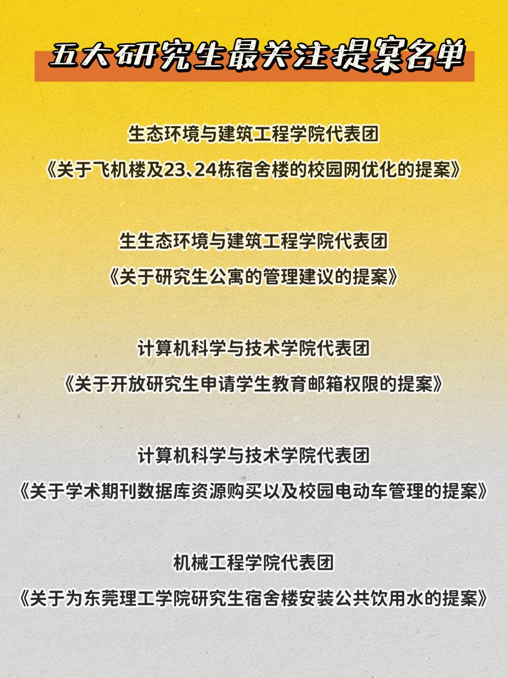 会前,第二十次学代会、第三次研代会筹备组精选出20份本科生优秀提案、8份研究生优秀提案作微信巡展,并在学生群体中举行了投票,最终选出《关于完善校园网连接问题的提案》等10份学生最关注的提案、《关于飞机楼及23、24栋宿舍楼的校园网优化的提案》等5份研究生最关注的提案。法律与社会工作学院(知识产权学院)、生态环境与建筑工程学院、经济与管理学院、机械工程学院、计算机科学与技术学院被评为优秀提案组织单位。