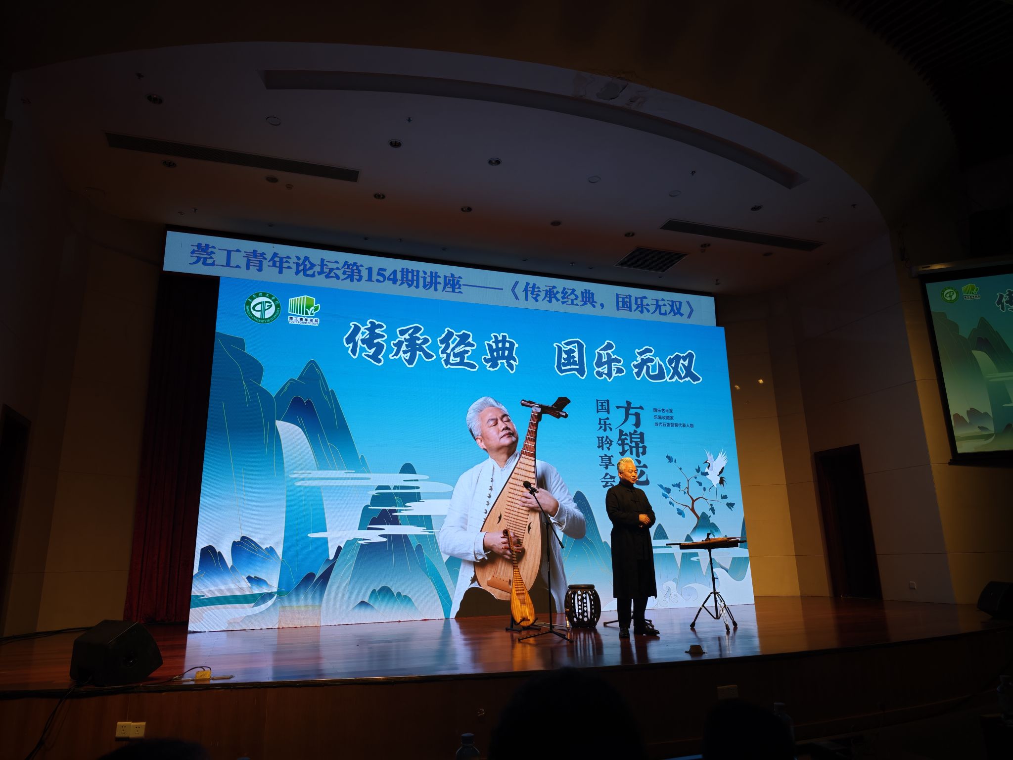 5月21日,国乐艺术家、乐器收藏家、当代五弦琵琶代表人物方锦龙做客“莞工青年论坛”,为莞工学子带来了一场关于中国传统乐器文化的讲座。