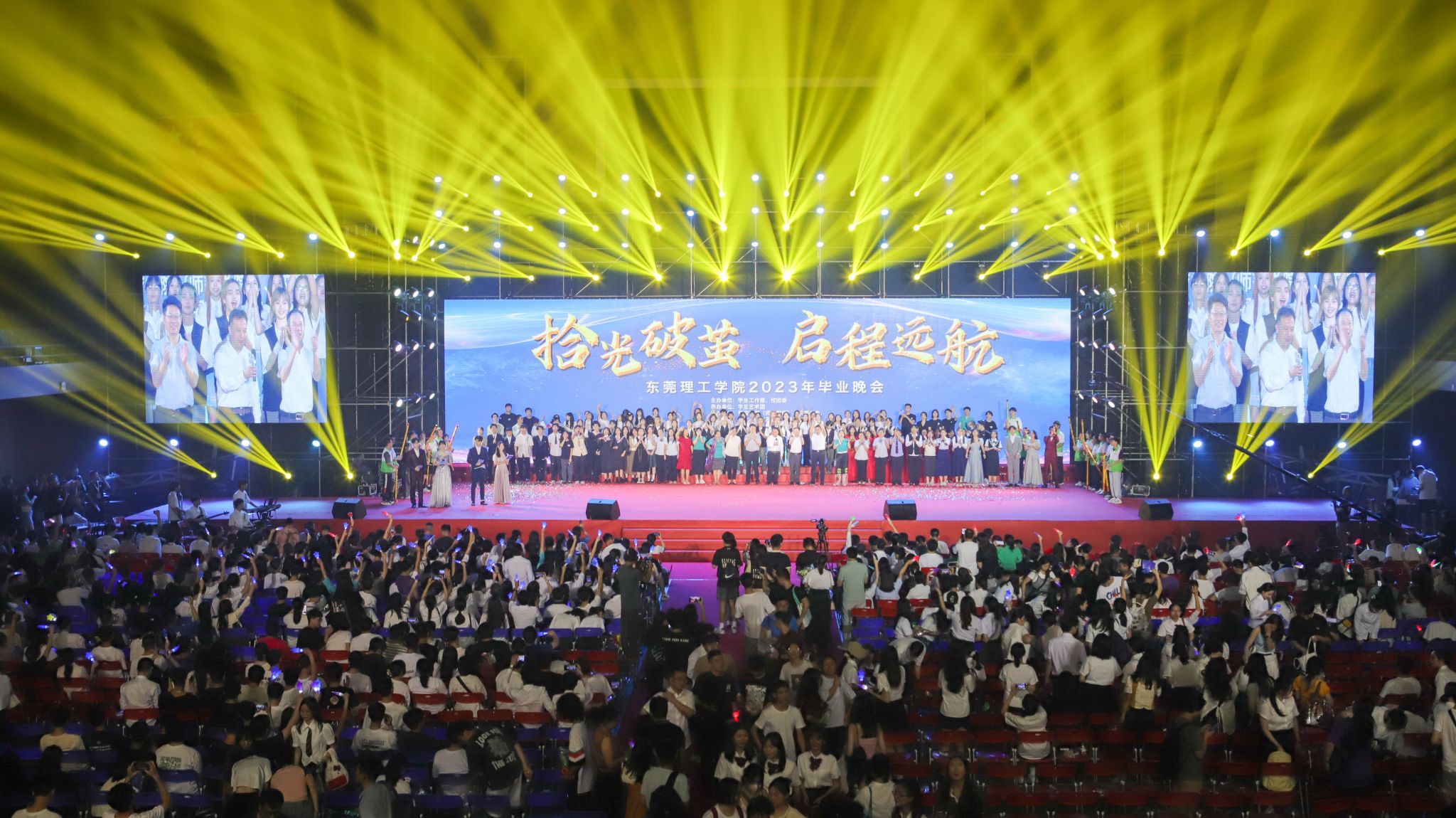 时光荏苒,岁月如歌,又是一年毕业季。6月26日晚,“拾光破茧 启程远航”2023年毕业生晚会在学校松山湖校区体育馆举行。校领导马宏伟、李忠红、李文芳,学校各二级组织机构负责人、各二级学院教师代表以及应届毕业生一同观看了晚会。