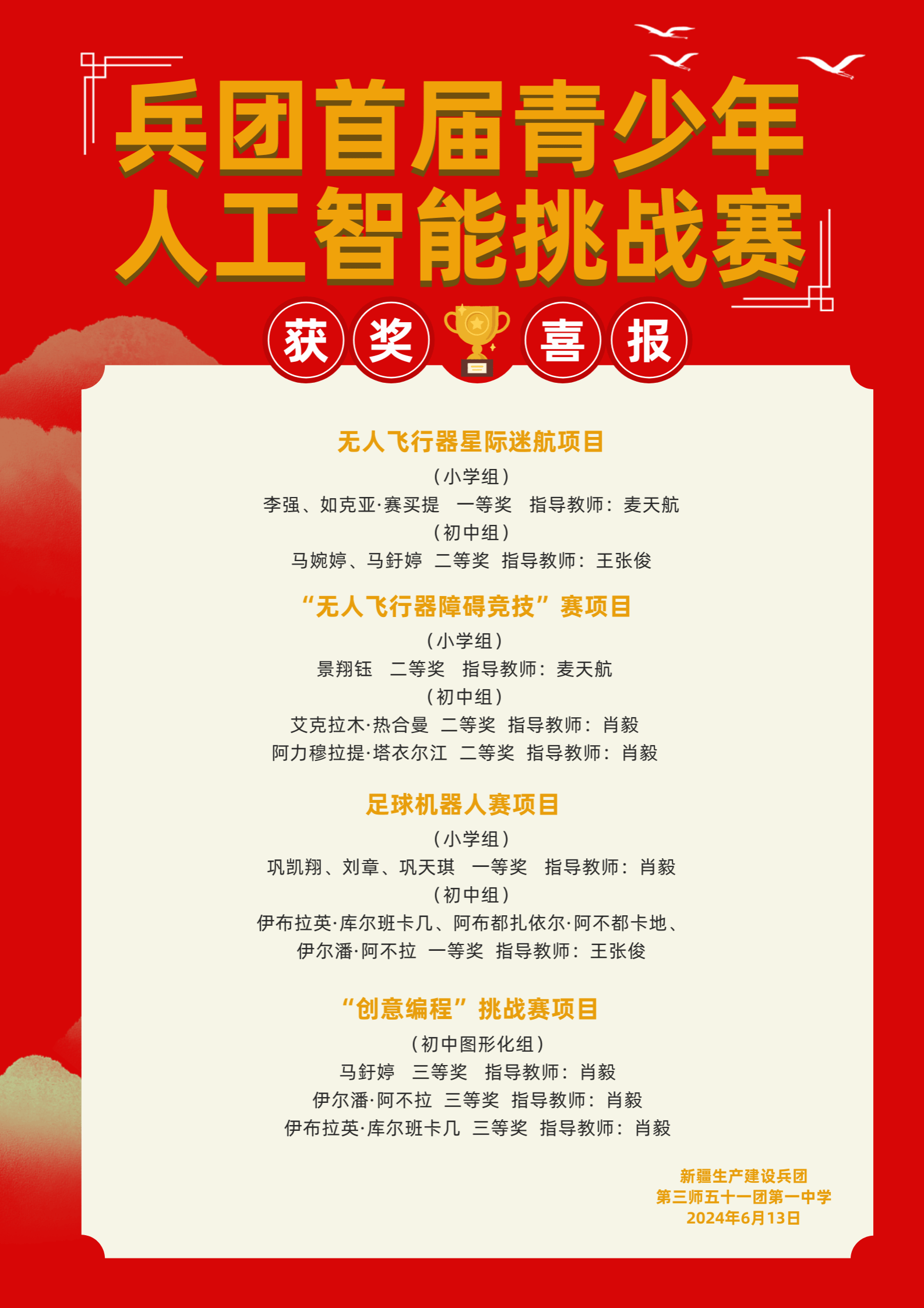 近日,兵团首届青少年人工智能挑战赛在乌鲁木齐举行,由我校与新疆对口支援地区共建的博雅科普基地选派的参赛队伍,在第四批援疆支教队领队教师肖毅、副队长麦天航和当地教师的指导下,博雅科普基地学生在本次比赛中荣获3个一等奖、4个二等奖、3个三等奖的优异成绩。
