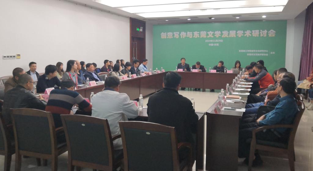 2019年11月29日上午9点,“2019:创意写作与东莞文学发展学术研讨会”在东莞理工学院松山湖校区学术会议中心302室举行。本次研讨会由东莞市文联发起,东莞市文艺评论协会、东莞理工学院城市文化研究中心承办,并得到了国家财政专项“珠三角制造业产品创意设计师资队伍建设”及东莞市文联的大力支持。共有来自北京大学、北京舞蹈学院的专家学者、文艺批评家、以及东莞本土作家、东莞理工学院文学与传媒学院学生等40多人参加了本次研讨会。