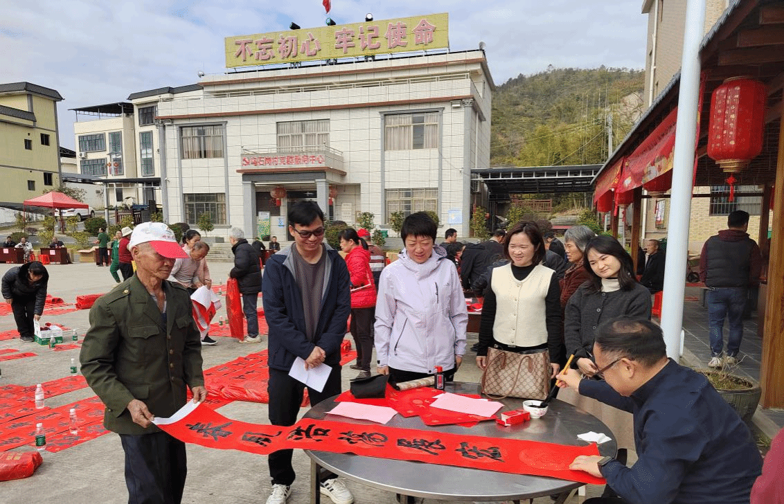 随后,由工作室与文传学院主办的“‘双百’助乡村 乌石岗挥春留影贺新岁”活动顺利开展。书法老师们为村民量身创作个性化春联,当地摄影家们免费为村民拍摄全家福,用笔墨传递新春祝福,用镜头定格团圆瞬间。村民们踊跃参与、笑容洋溢,浓浓的年味与深厚的校地情谊在此交融,成为新春来临之际乡村最美的风景。