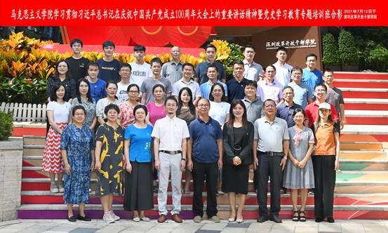 为深入学习贯彻习近平总书记在庆祝中国共产党成立100周年大会上的重要讲话精神,增强为党育人、为国育才的历史使命感,7月12日-13日,马克思主义学院全体教师赴深圳改革开放干部学院开展为期两天的专题培训。