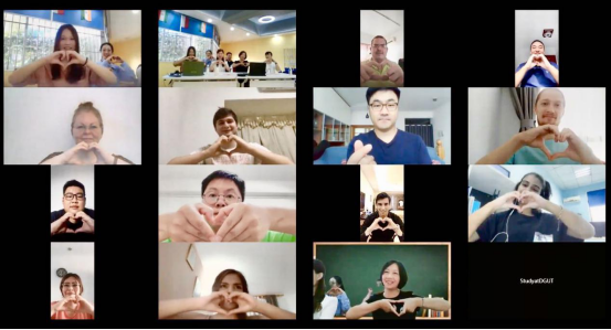 在师生互动交流环节中,留学生们均表达了对疫情时期能够在东莞理工学院学习的感恩、与中国老师和各国同学线上相聚的喜悦,以及对崭新学习生活的憧憬。跨国有时差,相知无距离,典礼现场气氛热烈,欢声笑语不断。