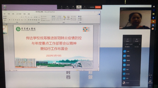 3月10日下午,知行学院通过网络会议,学习贯彻学校统筹推进新冠肺炎疫情防控与年度重点工作部署会议精神,会议历时两小时,知行学院全体工作人员、两校区驻校社工参加。