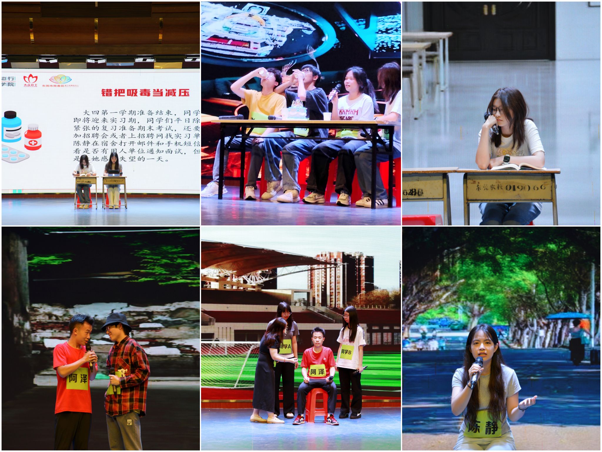 6月12日,在“6.26”国际禁毒日来临之际,东莞理工学院知行学院(通识教育学院)与莞城公安局、莞城禁毒办、东莞市莞香花青少年服务中心等单位合作,由莞城校区驻校社工带领社区剧场团队来到了东莞市经济贸易学校开展禁毒教育剧场演出,现场约150名同学参与。