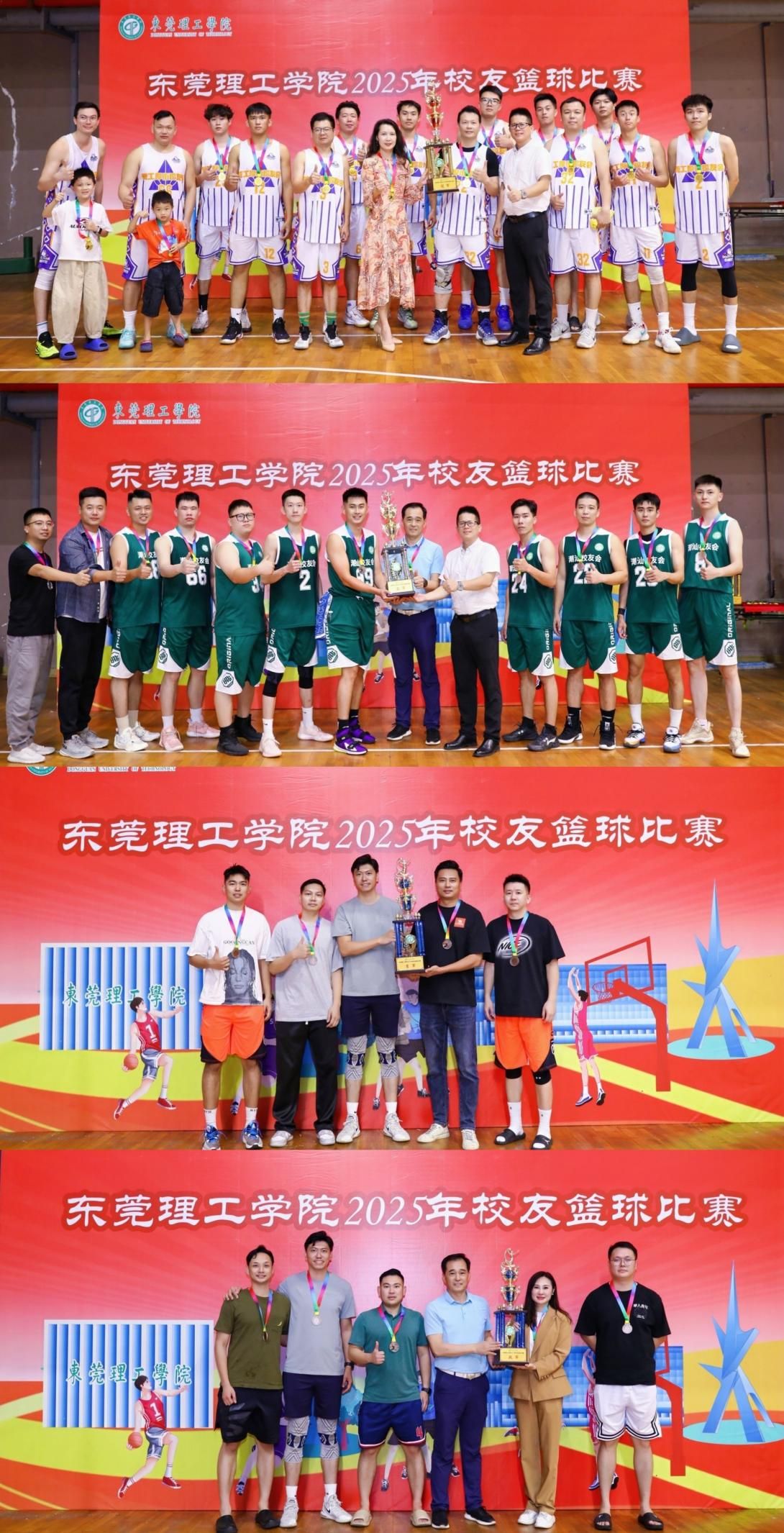 11月1日,由东莞理工学院校友总会主办的2025年校友篮球比赛在松山湖校区体育馆圆满结束。本届赛事汇聚了六支校友代表队,经过多轮激烈角逐,历时一个多月,正式落下帷幕。