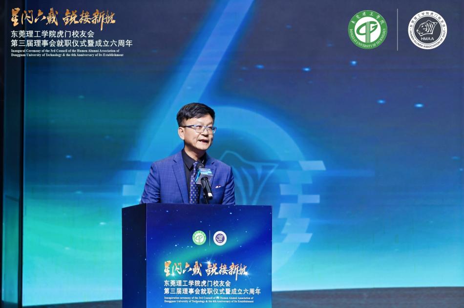 校党委副书记、校长马宏伟首先代表学校向虎门校友会成立六年来,在助推地方经济社会发展、提升母校影响力等方面作出的突出贡献给予了高度肯定和赞赏,向新一届理事会表示祝贺,并介绍了学校近年来在人才培养、学科建设、师资引进、国际合作等方面取得的显著成果。他强调,学校正处在“申博”“更大”的关键攻坚阶段,比以往任何时候都更需要广大校友的智慧与力量。他对虎门校友会(联络处)提出三点期望,一是要承前启后,持续创新工作方法,健全联络机制,精准对接校友发展需求,真正将虎门校友会建设成为情感共鸣、事业共创、使命共担的温暖家园。二是要凝心聚力,主动融入母校发展新格局,在强化学科建设、深化科研合作、助力人才引进、促进成果转化等方面贡献智慧与资源,与母校同心同德、携手并进,共同书写“母校助力校友成长,校友助推母校发展”的共生共荣新篇章。三是要立足虎门,服务湾区,充分发挥地域优势与校友资源,厚植家国情怀,弘扬“爱国奋斗、追求卓越”莞工精神,主动服务地方产业转型升级与社会经济发展,在推进中国式现代化进程中,彰显莞工人的使命与担当。