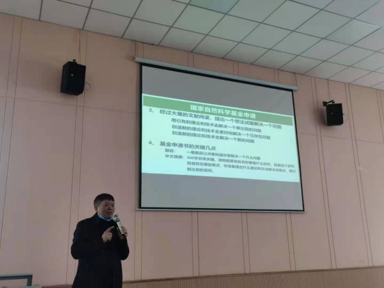 会上,孙元章从评审专家的角度,结合历年国家自然科学基金的评审要点,详细介绍基金申报内容提炼以及申请书撰写技巧,从研究方法、研究路线、可行性分析及特色与创新之处等四个关键点进行剖析和讲解,为大家理清写作思路,提高申报成功几率。