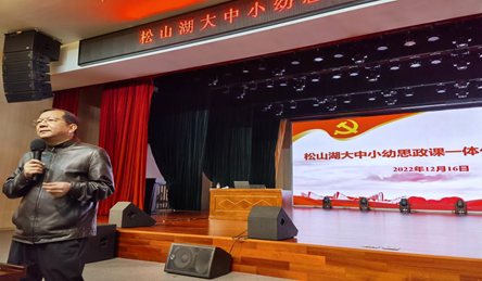 松山湖科技教育局教育科科长曾鸣强调,松山湖园区大中小幼思政课一体化建设工作很有意义,是学习贯彻习近平新时代中国特色社会主义思想的探索实践,感谢东莞理工学院马院发挥专业人才优势,牵头做好园区大中小幼思政课一体化建设工作,松山湖科技教育局教育科将积极支持和配合,为培育更多的思政精品课程努力。