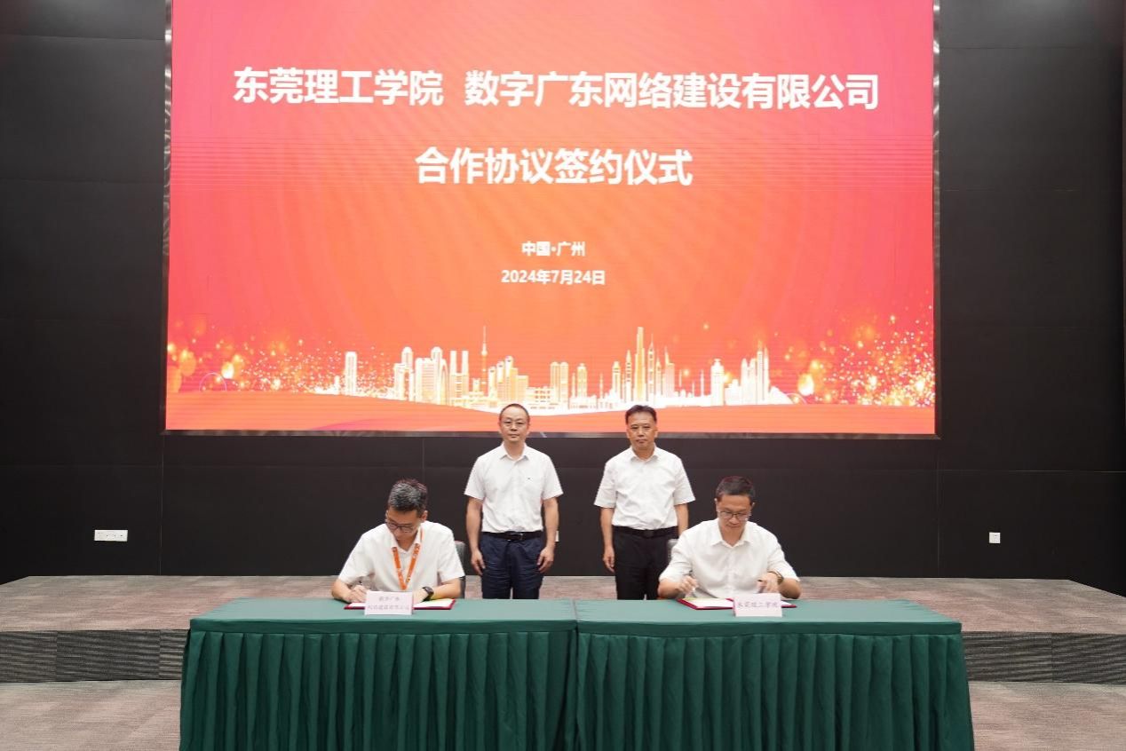 7月24日,我校与数字广东网络建设有限公司合作协议签约仪式在数字广东公司举行。学校党委副书记、校长马宏伟,发展规划部部长、环建学院院长郑愚,数字广东公司副总经理、首席安全官谭峻峰,总会计师、工会主席牛宏志,地市服务事业部负责人杨洋,东莞分公司总经理何振亮以及双方相关部门负责人参加了签约仪式。郑愚和杨洋分别代表双方签署了合作协议。