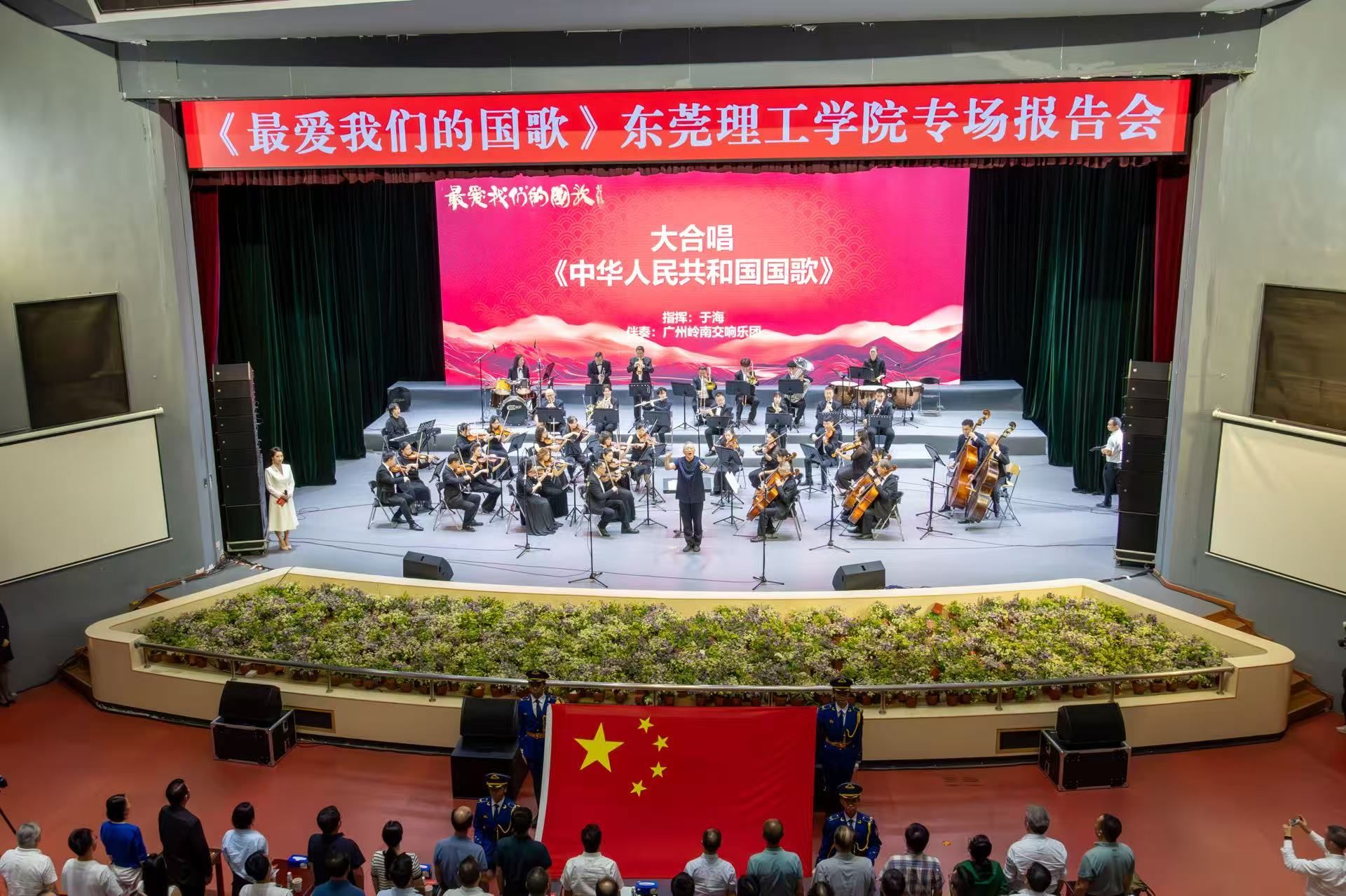 《最爱我们的国歌》东莞理工学院专场报告会暨音乐会由东莞理工学院主办,中国国际文化交流基金会/人文交流与创新发展高级研修班、得利集团、广州岭南交响乐团协办。