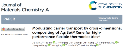 近期,我校国际微电子学院逯瑶副研究员在材料学1区Top期刊《Journal of Materials Chemistry A》上发表题为“Modulating carrier transport by cross-dimensional compositing of Ag2Se/MXene for high-performance flexible thermoelectrics”的研究论文,联培博士生秦杰为论文第一作者,逯瑶博士为共同第一作者及通讯作者,东莞理工学院为第一完成单位,合作单位包括松山湖材料实验室及上海应用技术大学。