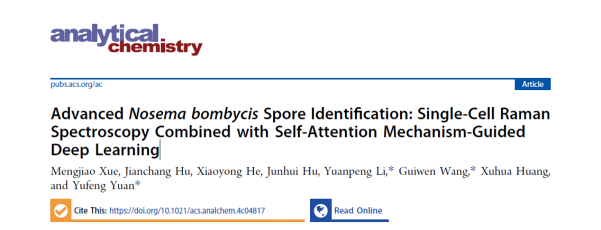 近日,我校电信工程与智能化学院袁玉峰研究员团队在美国ACS旗下分析化学领域顶级期刊《Analytical chemistry》发表题为“Advanced Nosema bombycis Spore Identification: Single-Cell Raman Spectroscopy Combined with Self-Attention Mechanism-Guided Deep Learning”的研究论文。该成果以东莞理工学院为第一完成单位,电信工程与智能化学院袁玉峰研究员联培硕士生薛梦娇为论文第一作者,袁玉峰与广西科学院王桂文研究员、广西师范大学黎远鹏副教授为论文共同通讯作者。
