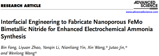 近期,我校汪文龙研究员团队在电化学氮气还原领域取得研究进展,相关成果以“Interfacial Engineering to Fabricate Nanoporous FeMo Bimetallic Nitride for Enhanced Electrochemical Ammonia Synthesis”为题发表在综合性一区TOP期刊《Advanced Science》。该论文东莞理工学院是第一单位,中科院深圳先进技术研究员是合作单位,博士后方彬是该论文的第一作者,王鑫副研究员、金具涛副研究员和汪文龙研究员为通讯作者。